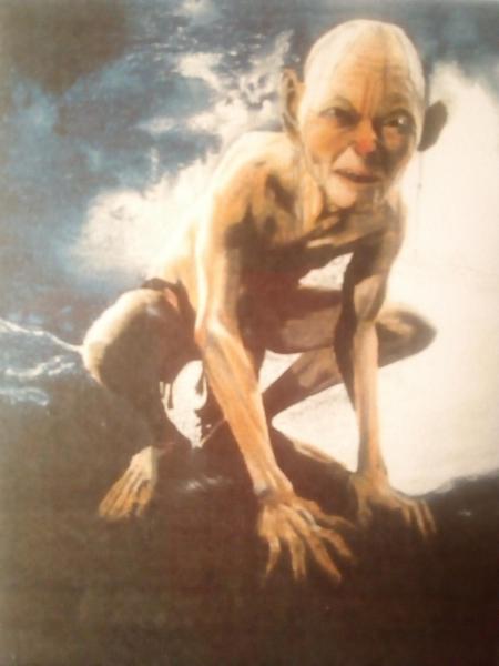Encore un dessin de Gollum du "Hobbit" et du "Seigneur des Anneaux" fait aux crayons pastels secs sur papier format A4.