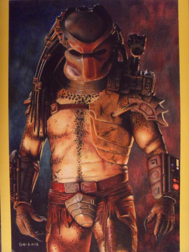 Voici Prédator dessiné aux crayons pastels secs en 2012 d après le film, qui porte le même nom, "Prédators". Il mesure 24x48cm et est fait sur papier.